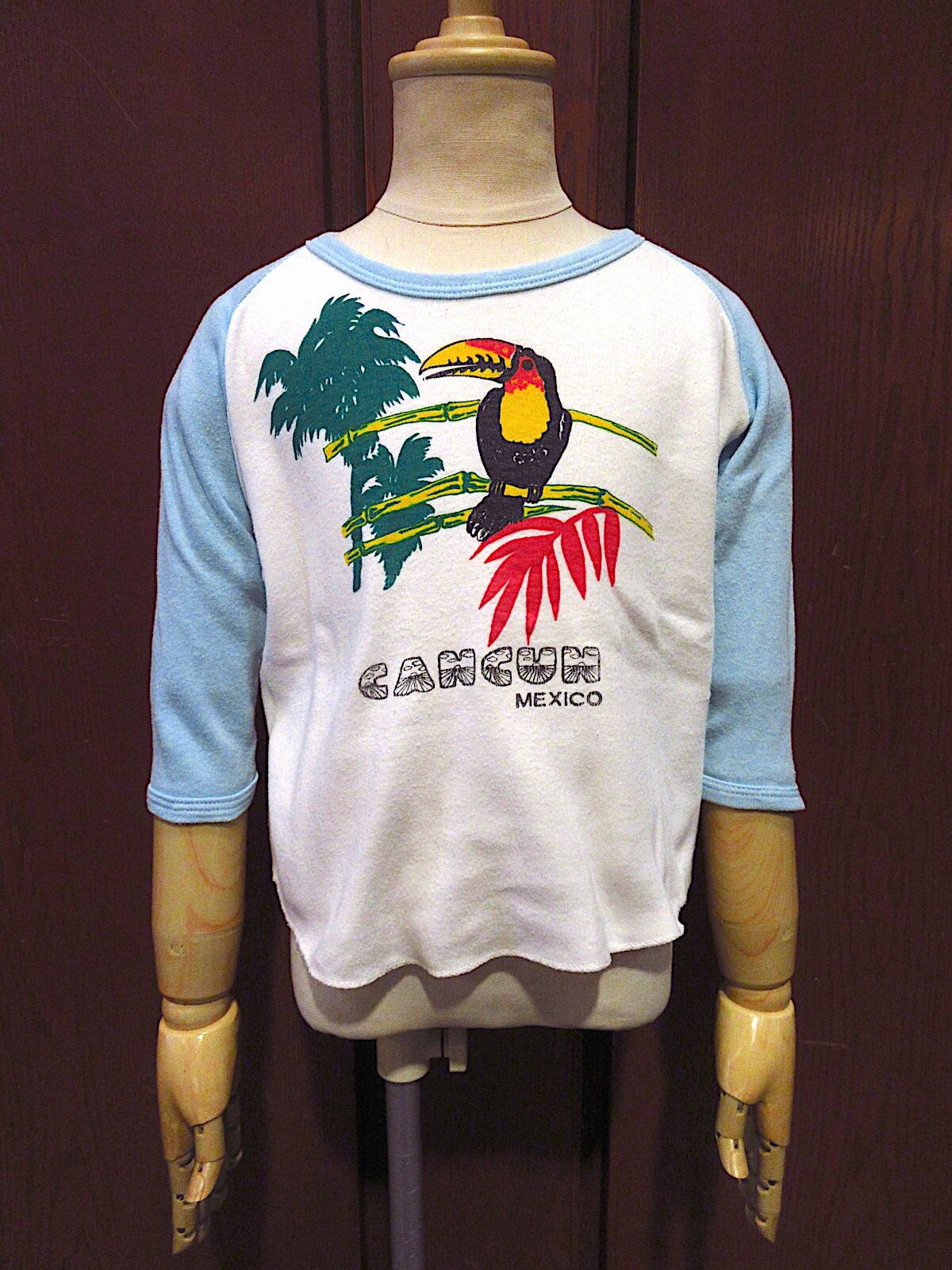 1970's キッズ CANCUN MEXICO 鳥プリント 七分袖 Tシャツ size 6