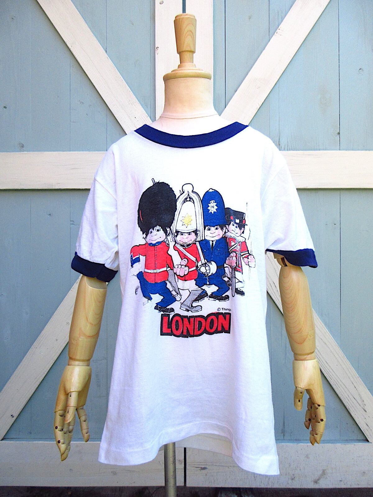 1980's キッズ LONDON プリントリンガーTシャツ size SMALL
